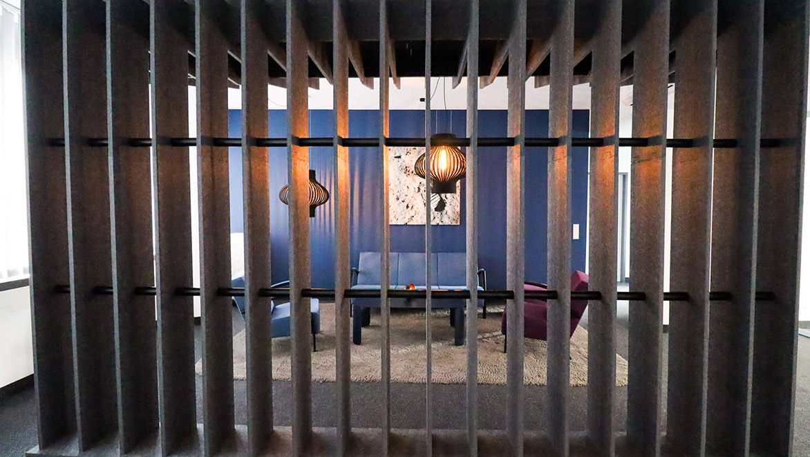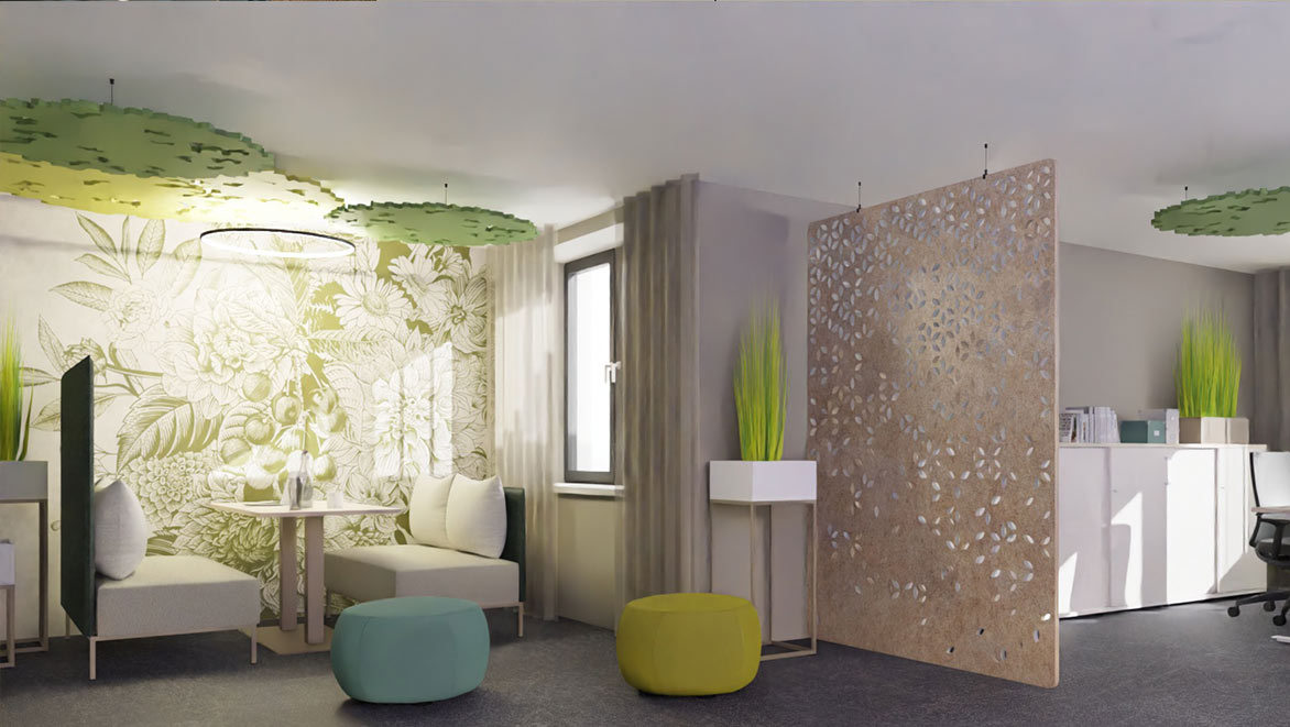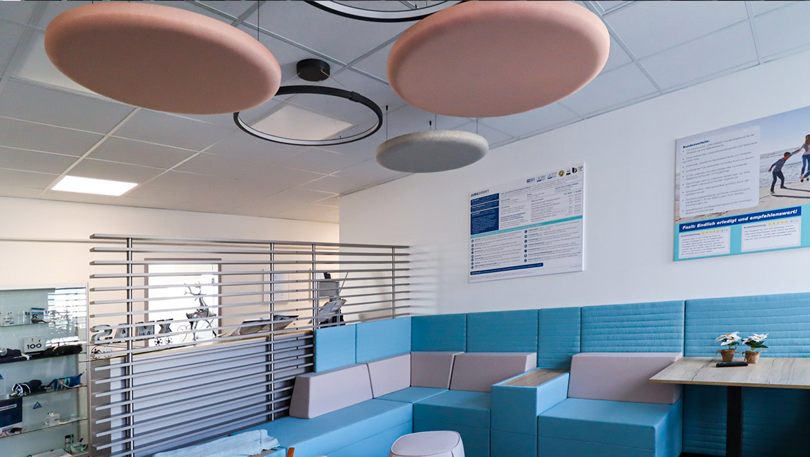 Ganz im Gegenteil. Die Zeiten von grauen Schaumstoffnoppen an den Wänden sind lange vorbei. Moderne Akustikplanung verbindet höchste Funktion mit anspruchsvoller Ästhetik. Wir arbeiten mit schallschluckenden Akustikbildern (gerne bedruckt mit Ihren eigenen Unternehmensmotiven), eleganten Deckensegeln, filigranen Holzlamellenwänden oder akustisch wirksamen Möbeln. Die Elemente fügen sich absolut natürlich in Ihr Corporate Design ein.